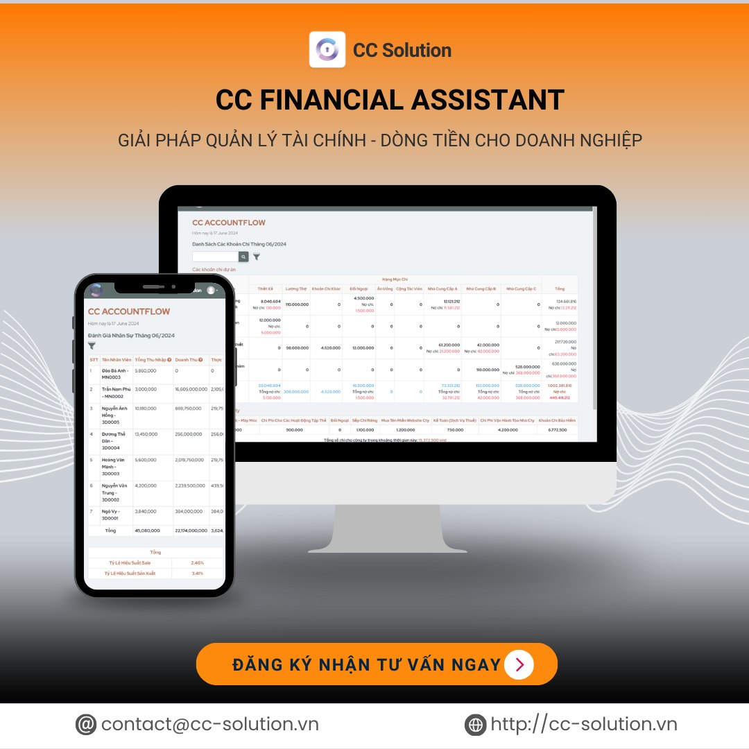 ???????? Để hỗ trợ doanh nghiệp trong việc quản lý tài chính và dòng tiền, nền tảng CC Financial Assistant là lựa chọn hoàn hảo. Với các công cụ tiên tiến, doanh nghiệp có thể quản lý lương thưởng, phúc lợi và dòng tiền một cách hiệu quả, giảm thiểu rủi ro tài chính và đảm bảo sự minh bạch trong mọi quy trình. ????